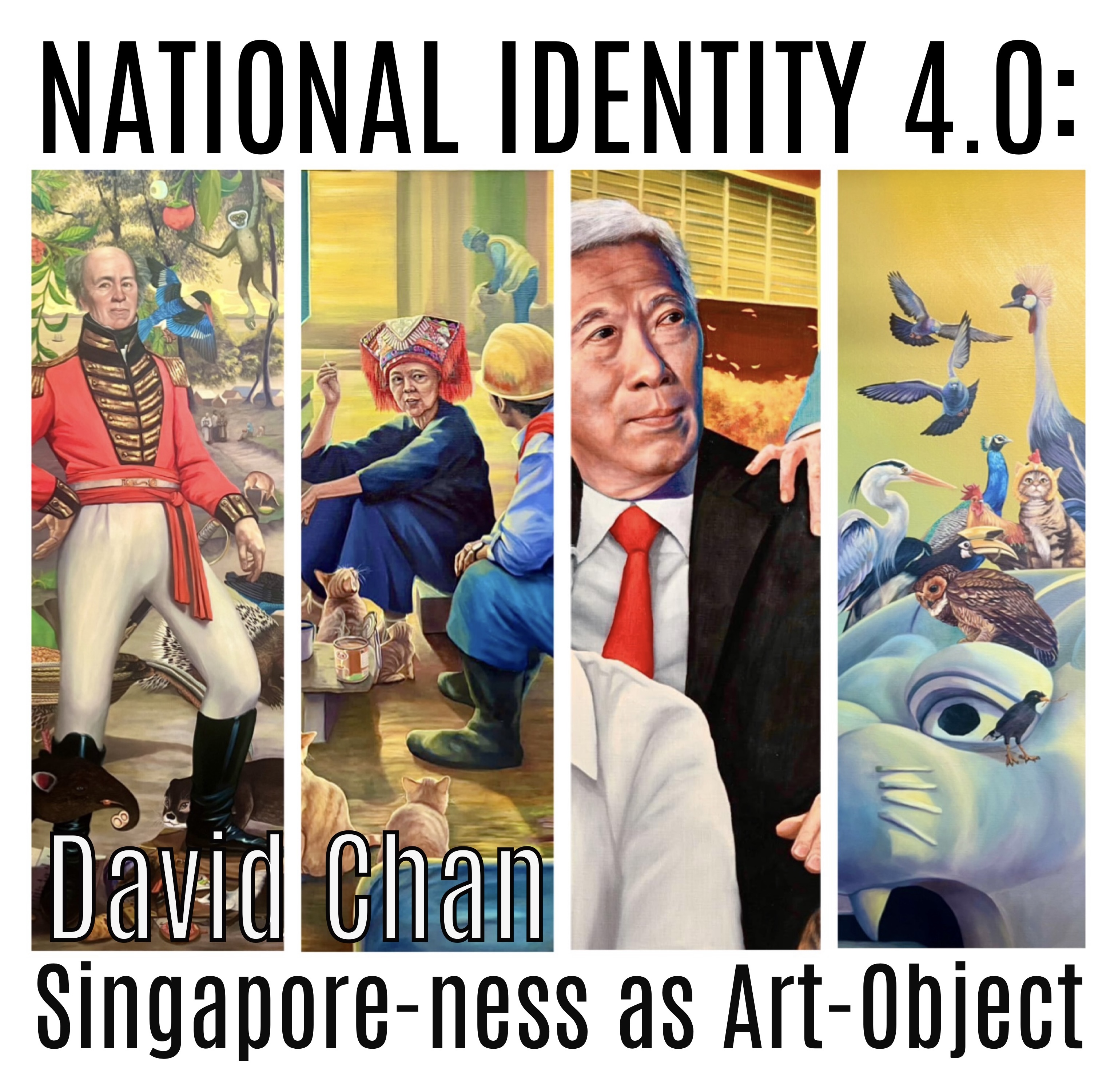 In his work, David uses realistic, layered compositions of humans, landscapes, animals, and related iconographies to offer critical reflections on social issues, blending humour and irony, inviting introspection on themes like popular culture, ethics, and contemporary behaviour. David’s works reflects our years of nation-building and quest to build a uniquely Singaporean identity. It's a fun and curious look at the cross-pollination between our social, political, cultural, and historical legacies. David’s works raises the question: What direction will Singapore take as it continues to evolve? He aims to explore observations, old stories, emerging nostalgia, and generational disconnects in the nation’s journey. Welcome to National Identity 4.0 - Conversations.